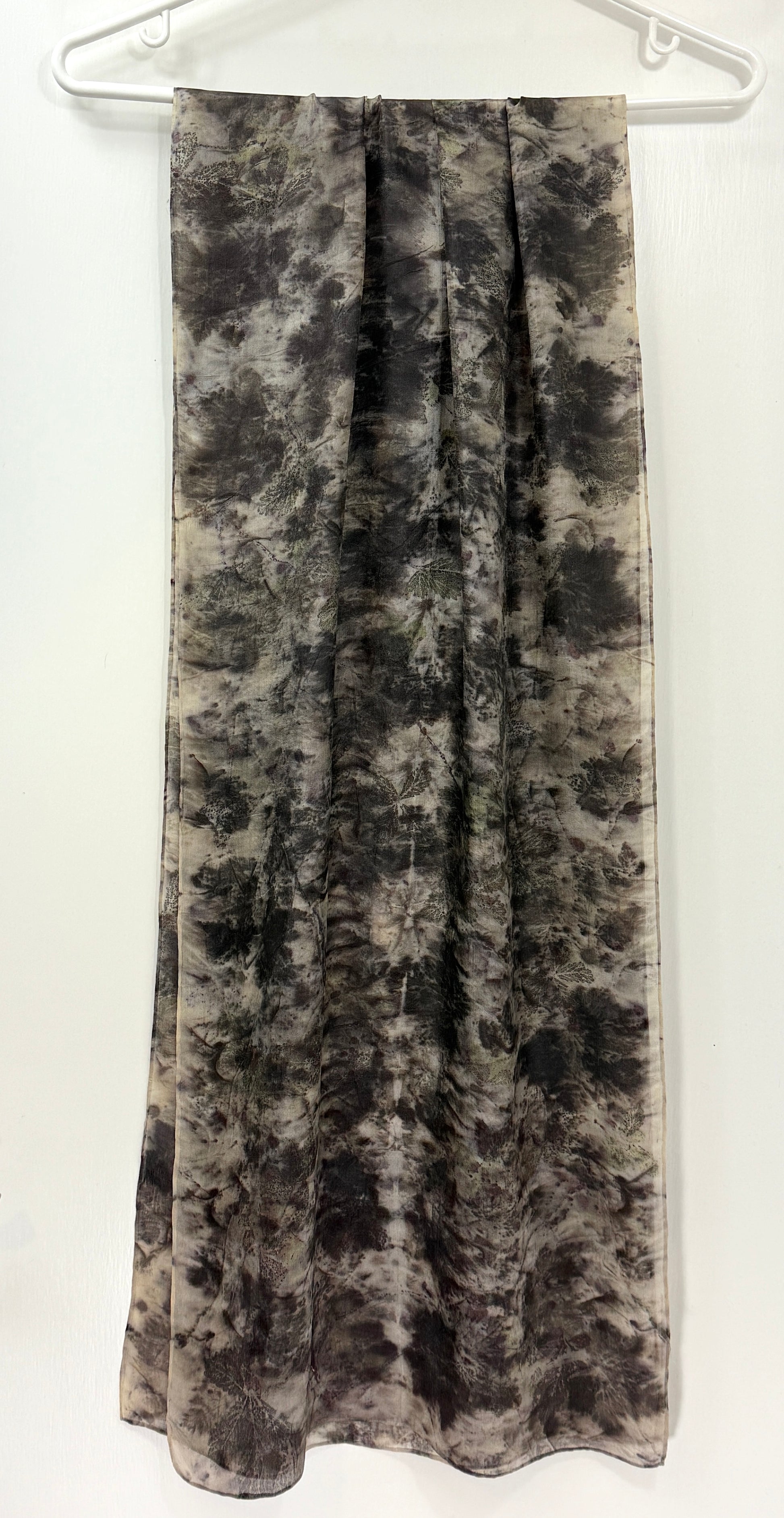 Crafted from 100% pure silk, this eco-printed scarf showcases exquisite natural designs created using traditional plant dyeing techniques. Each piece is handmade, ensuring a unique pattern that highlights sustainable artistry. Lightweight and breathable, it offers both elegance and an eco-conscious choice for your wardrobe. 45cm x 180cm